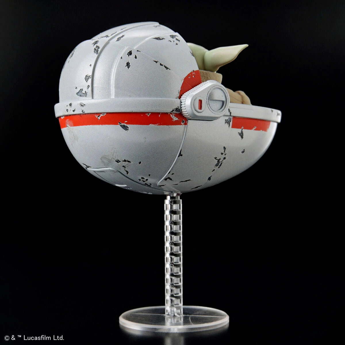 Grogu finally joins Bandai Hobby in a 1/4 scale model kit. The set includes multiple facial expressions and a 1/12 scale Grogu riding the hovering pram.