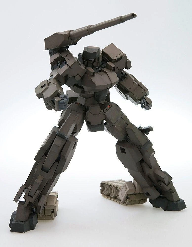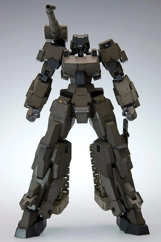 The Frame Arms Type 32 Model 1 Gourai gets an updated :RE model kit from Kotobukiya! Â It features the Frame Architect Type 001 body (which does not include a head or feet; the mech’s own head and feet provide those parts for the frame), for improved posability and stability. It’s molded in color so paint isn’t required, and its tank treads are movable and can be displayed in running or stored form. Â It’s armed with a 120mm low-recoil cannon and a tactical knife, too. Â Order today to increase your robot firepower!