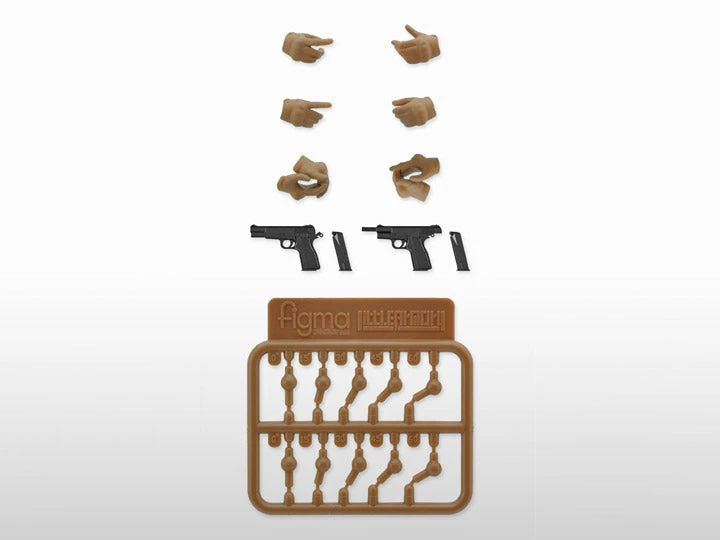 The set includes a combined left and right hand part for displaying your figma holding a handgun with both hands, hand parts for displaying your figma holding guns with angled grips and more, making it easy to display your figma with a wide variety of guns when paired with one of the previous handsets. The set also comes with runners for creating two 9mm auto pistols. Enjoy pairing with your Little Armory figma figures, figma Styles figures and more!