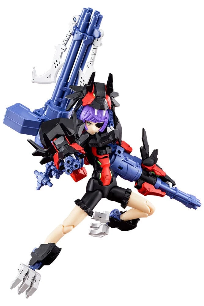 This model is thus enhanced by using the Little Red model kit as a base and adding three Gatling Guns, three wolf heads and newly sculpted parts. Users can enjoy freely creating dynamic poses with the large and small and Gatling Guns. Megami Device is a plastic model kit series where users can enjoy equipping weapons and armor to articulated bishoujo-style beauties. The “machinika” body designed by Masaki Apsy allows you to create more dynamic and beautiful poses with this model.