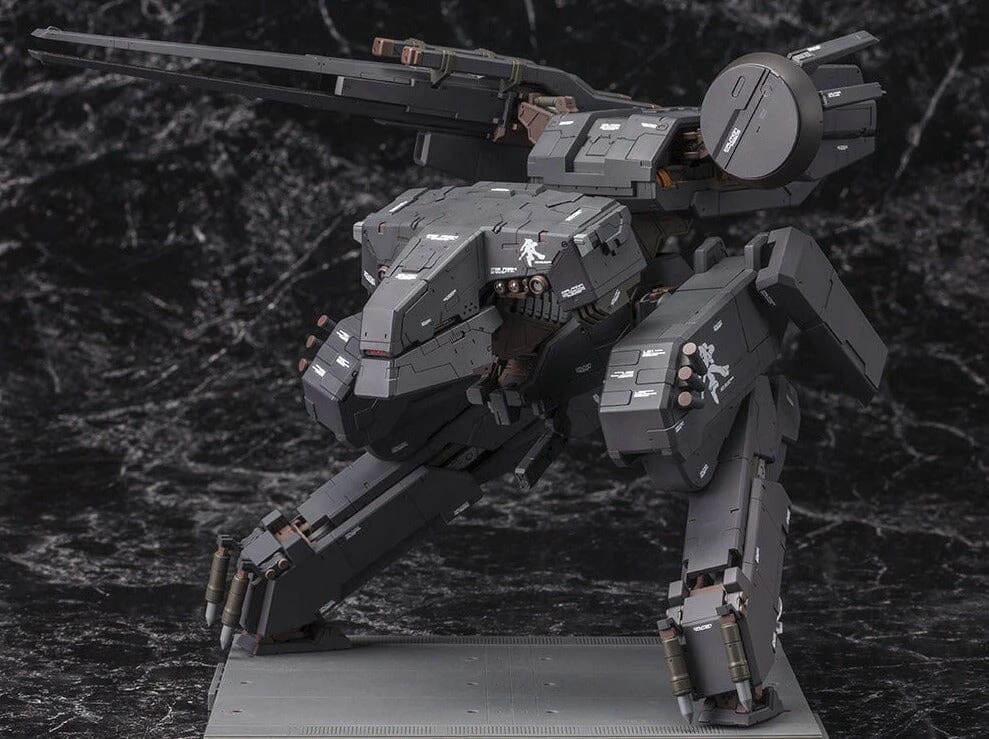 The sculpt remains as is, with the color scheme changed to black to allow for easy painting as an original feature for this model. New decals, such as caution marks that add detail to the model and marking decals that allow for the original REX to be recreated, are included. A total of four figures are included: Solid Snake, a Cyborg Ninja figure in the standard standing pose, a damaged version of Cyborg Ninja to recreate the famous scene where he is crushed by REX’s feet, and Liquid Snake. A special base designed after the hangar from the series is also included.